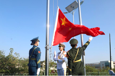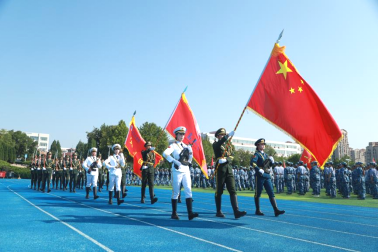 伴随着庄严的国歌声,五星红旗冉冉升起,军训结营仪式正式拉开帷幕。