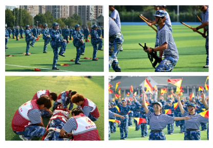 军体拳、刺杀操、应急救护技能、旗语操等表演