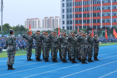 军训团团长、校长刘连新向军训团授旗