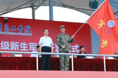 仪式在庄严的国歌声中拉开帷幕。青岛工学院军训团团长、校长刘连新向军训团授旗。随后,青岛工学院“筑梦青工红旗连”进行了精彩的训练科目表演,向新生们展现昂扬向上的精神风貌和良好的军事素养。