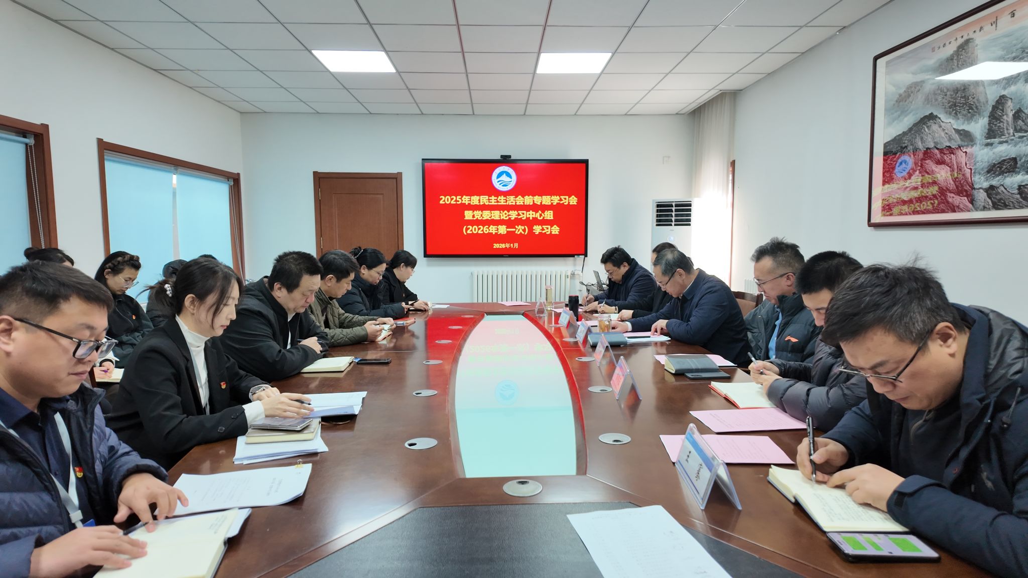 1月20日,学校召开2026年党委理论学习中心组第一次学习会暨2025年度民主生活会前专题学习会。会议全面学习贯彻习近平新时代中国特色社会主义思想和党的二十届四中全会精神,深入学习领会习近平总书记关于党的建设的重要思想、关于党的自我革命的重要思想、关于加强党的纪律建设、作风建设的重要论述,重点学习贯彻习近平总书记在中央政治局民主生活会、二十届中央纪委五次全会上的重要讲话精神,为开好2025年度民主生活会打牢思想基础。党委理论学习中心组成员参加学习,党委书记李军主持会议。